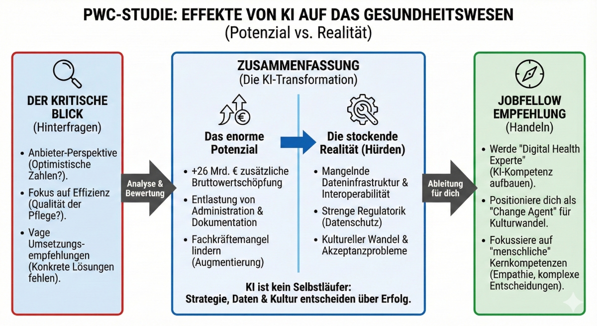 3. Fokussiere dich auf das "Menschliche": Wenn KI die Administration übernimmt, wird die Zeit für echte Patienteninteraktion, Empathie und komplexe Entscheidungsfindung wertvoller. Stärke genau diese "menschlichen" Kernkompetenzen, die KI nicht ersetzen kann.